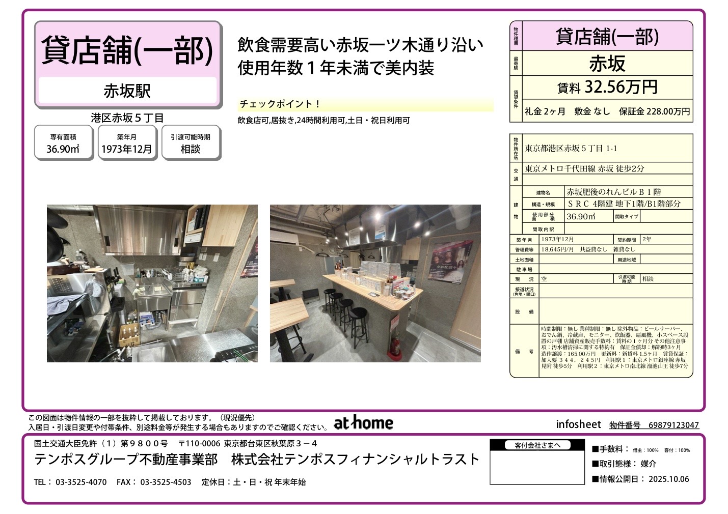 飲食店可 居抜き 24時間利用可 土日・祝日利用可