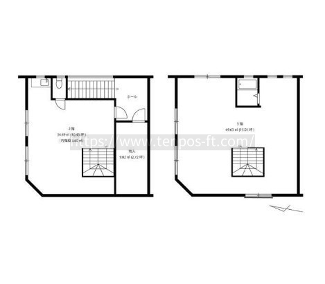 賃借は2階と3階、メゾネットタイプ。2階トイレ,ミニキッチン、3階ユニットバス付。軽飲食要相談。*図面・写真が現況と相違している場合、現況を優先とします。 加入要 全保連 月額総賃料の100% .専有部分にトイレあり