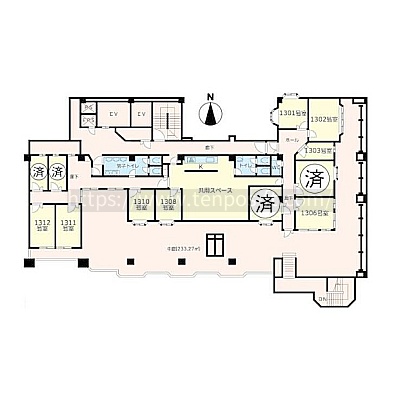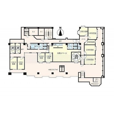 専有面積2.2坪(7.3㎡) 所在階13階